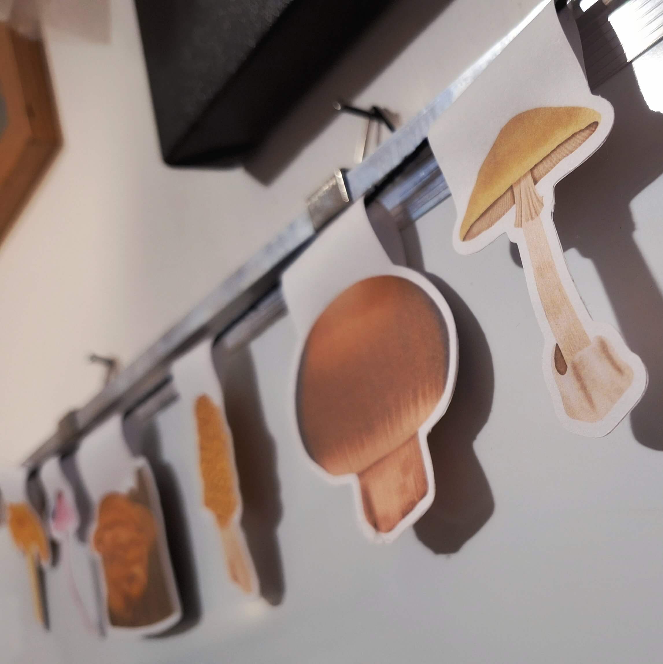 6. Fűzd át a madzagot a gombák tetején kialakított kis nyíláson, és igazgasd el őket tetszés szerint.