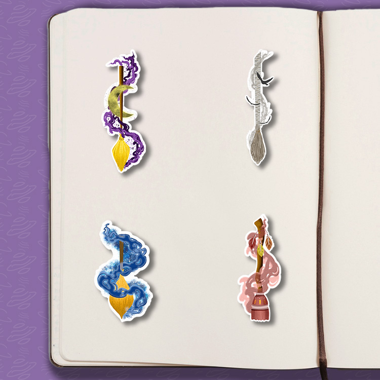 Díszítsd felületeidet ezekkel a különleges seprűs dekor matricákkal, melyek varázslatot hoznak a mindennapokba! Négy egyedi grafika. egyedülálló seprűket ábrázol: mindegyik saját varázslatos elemekkel díszítve.